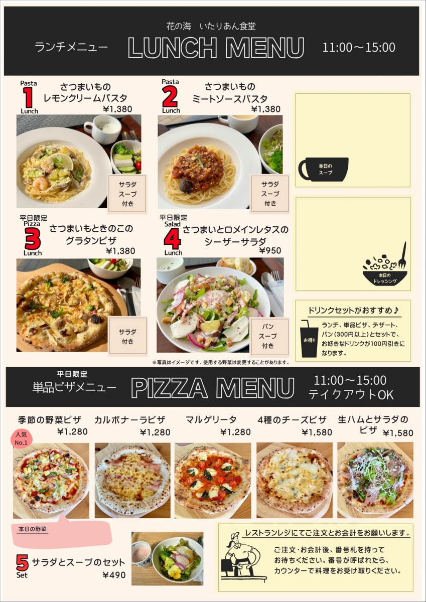 花の海で穫れたさつまいもを使ったランチ・スイーツをご用意!!